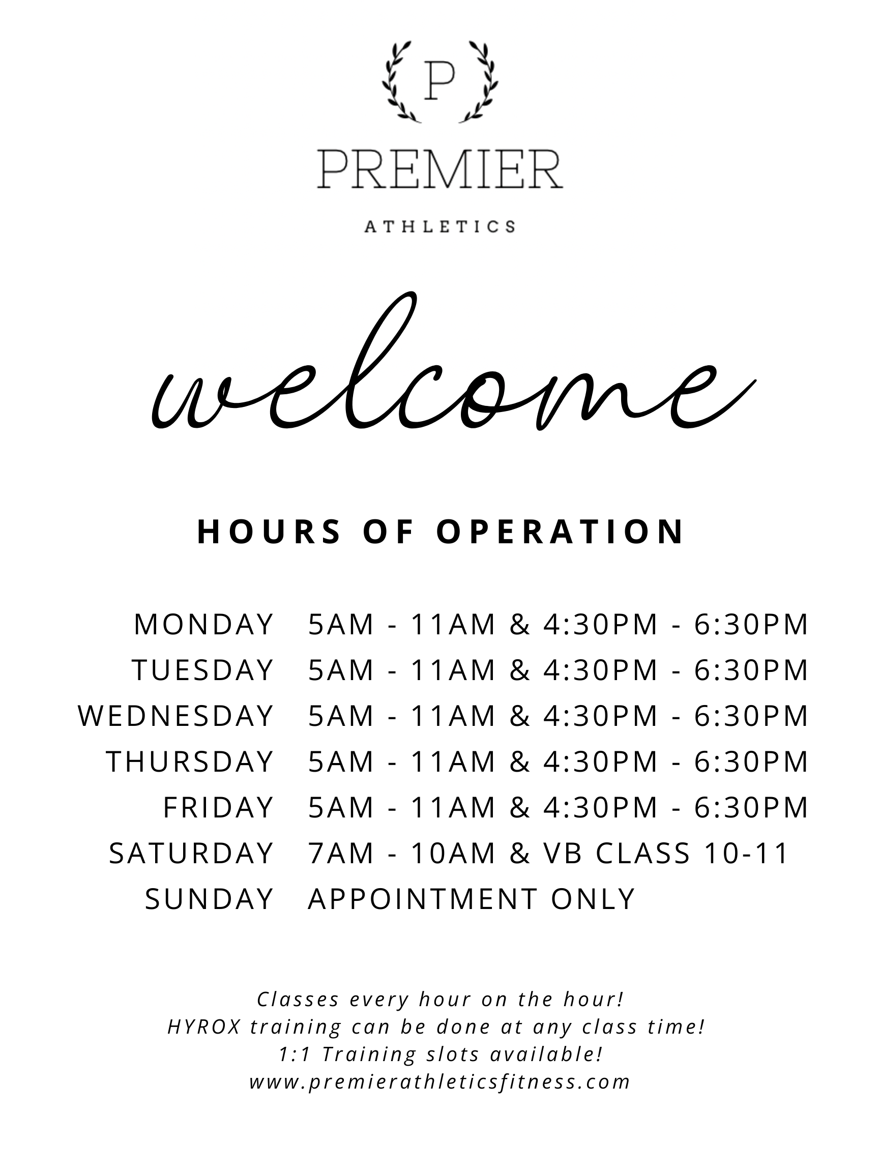 At Premier, classes run every hour on the hour, making it easy to train around your schedule. HYROX workouts can be completed during any group training class, so you can join whenever it suits you. For a more personalized approach, 1:1 personal training sessions are available and can be scheduled by reaching out to us directly.